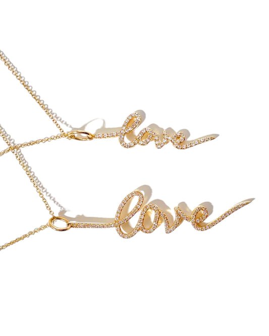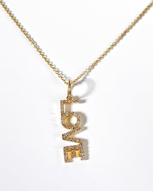 NEW 14K Gold & Diamond Vertical Hanging Love Necklace