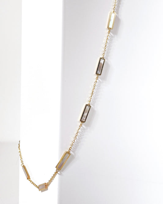 14K Gold Pave Vertical Gemstone Bar Necklace
