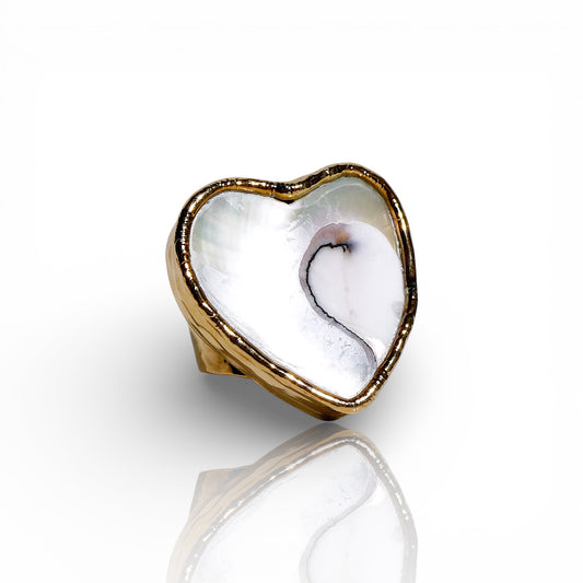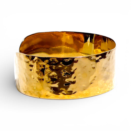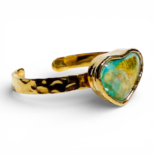 Heart-Shaped Chrysocolla Hammered Gold Cuff Bracelet