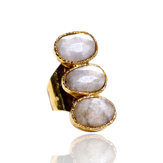 One Gold Natural Hematite Bracelet with Square Moonstone Charm