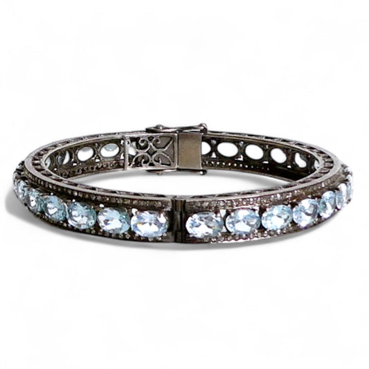 Blue Topaz and Black Diamond Bangle Bracelet 925 Silver