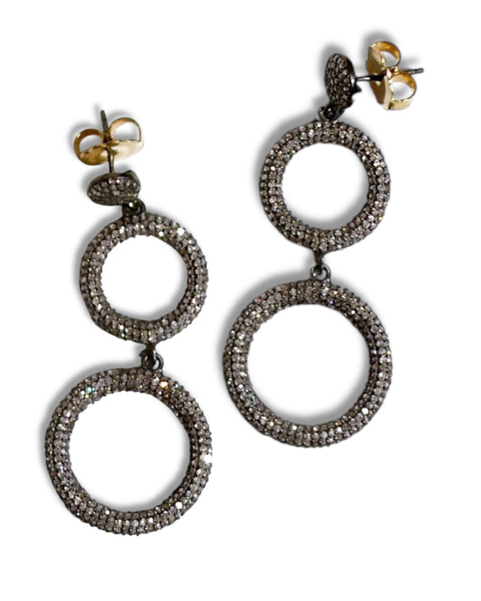 NEW Graduated Sliced Diamond Oval Halo Dangle Earrings