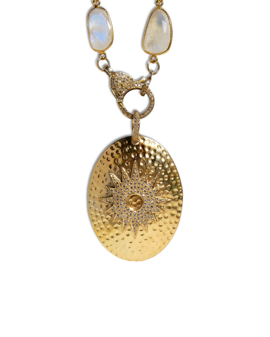 Hammered Oval Concho Pendant with Pave Diamond StarburstVendor:Kym V 14K GoldRegular price $298.00 USDRegular priceUnit price / per-
