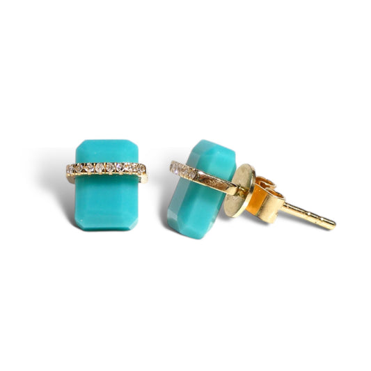 14k Gold Square Gemstone Studs with Diamond Pave BandVendor:Kym V DiamondsRegular price $347.00 USDRegular priceUnit price / per-
