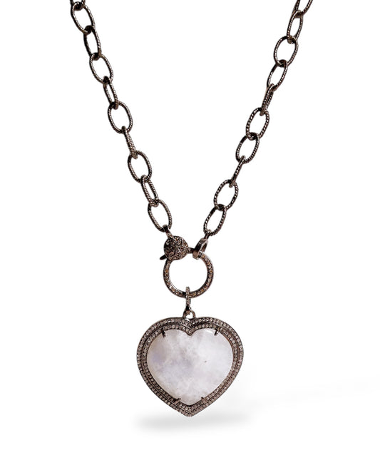 Gemstone Heart Pendant with Pavé Black Diamond Center