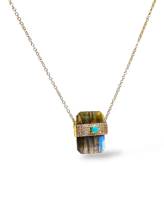 Labradorite and Pavé Diamond with Turquoise 14k Chain Necklace