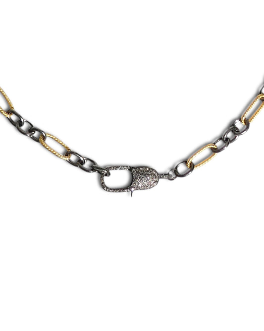 Two-Tone Steel Chain Choker with Diamond Clasp