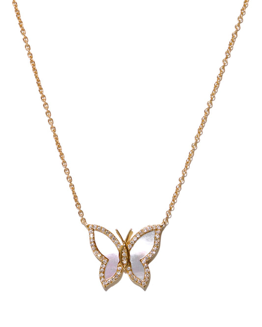 Beautiful 14K Gold Mother of Pearl Butterfly Necklace