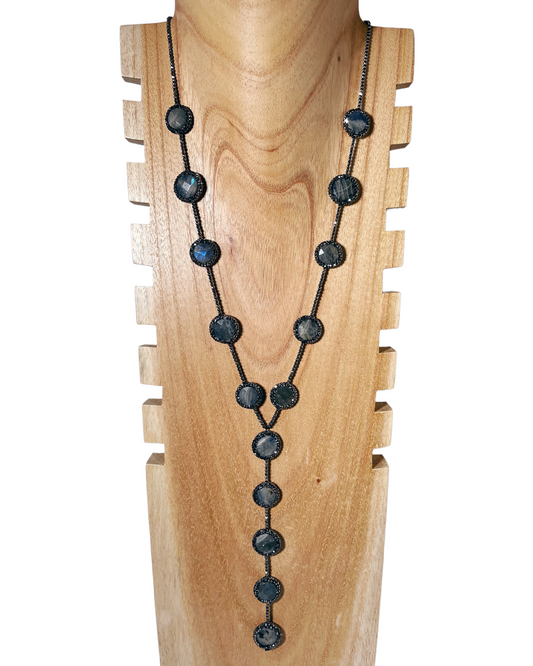 Long Hematite and Natural Gemstone Lariat Necklaces