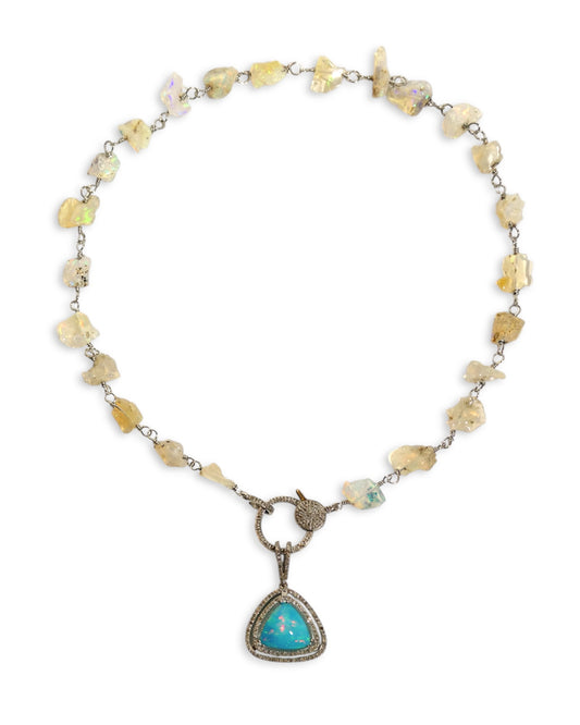 Triangle Australian Opal and Black Diamond Pendant