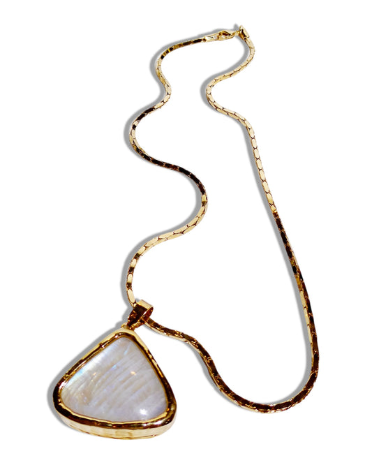 Natural Rainbow Moonstone Triangle Pendant