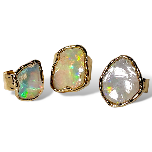 Gold Amazing Ethiopian Opal Gemstone Ring
