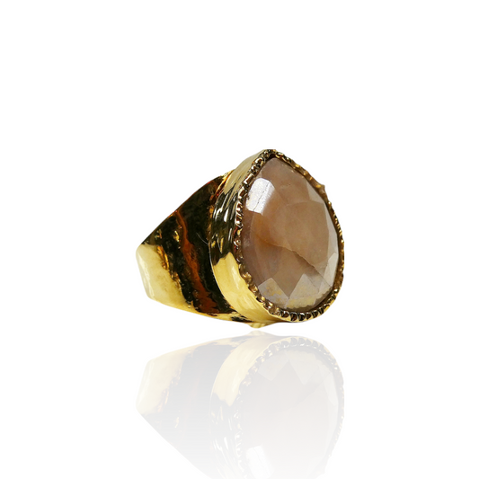 Pink Sapphire Gemstone Wide Teardrop Adjustable Ring
