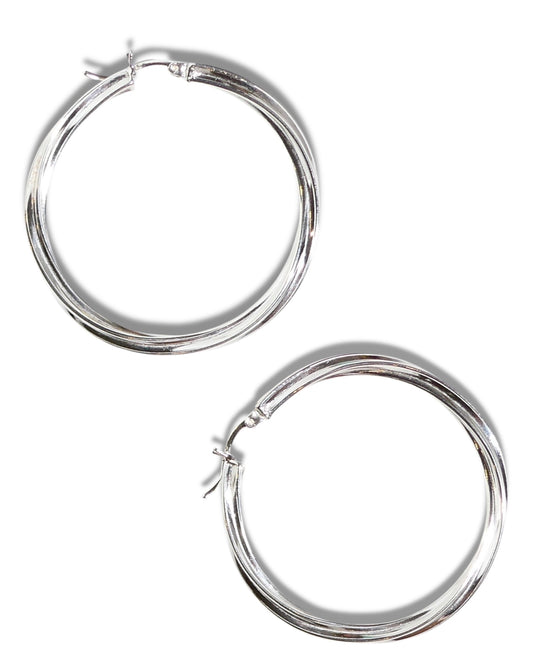 NEW Large Twisted Sterling Silver Hoop Earrings