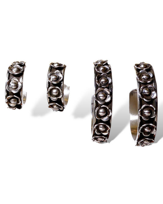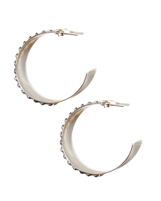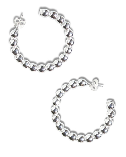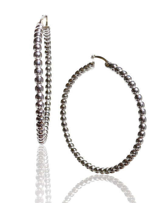 NEW Large Sterling Silver Beaded Hoops Earrings
