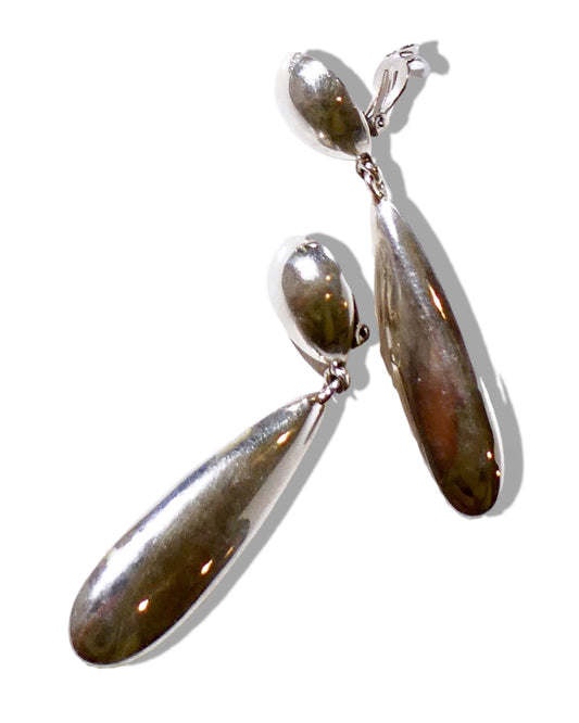 Sterling Silver Elongated Teardrop Clip-On Earrings