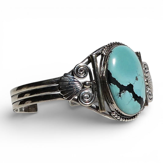 Oval Kingman Turquoise Sterling Silver Cuff Bracelt