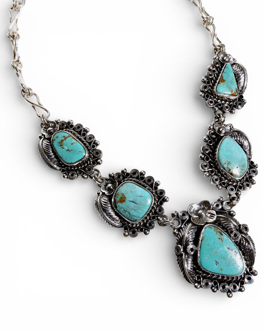 Southwestern Turquoise Necklace with Detailed Sterling Silver 925