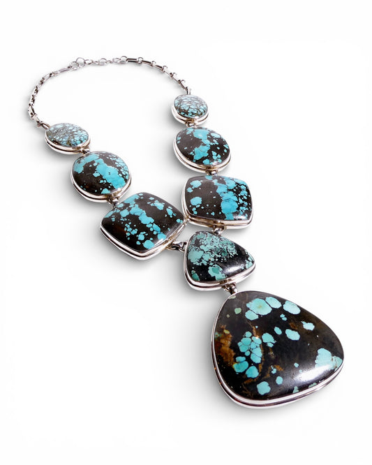 Black Matrix Turquoise and Sterling Silver 925 Bib Necklace