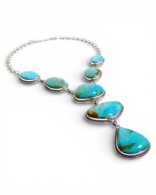 Mixed Shape Natural Turquoise Y-Drop Sterling Silver Necklace