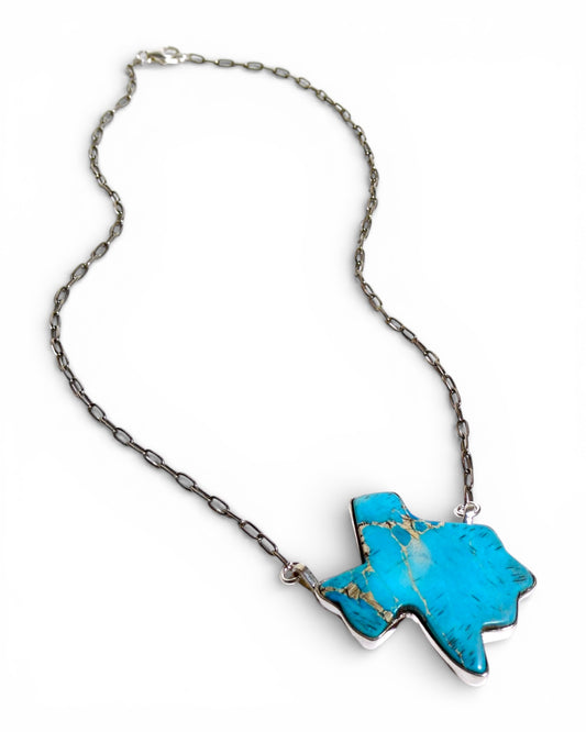 Vibrant Blue Turquoise State of Texas Sterling Silver Necklace