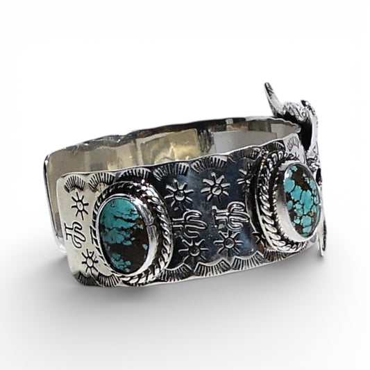 Sterling Silver Steer Cuff Bracelet with Turquoise Stones