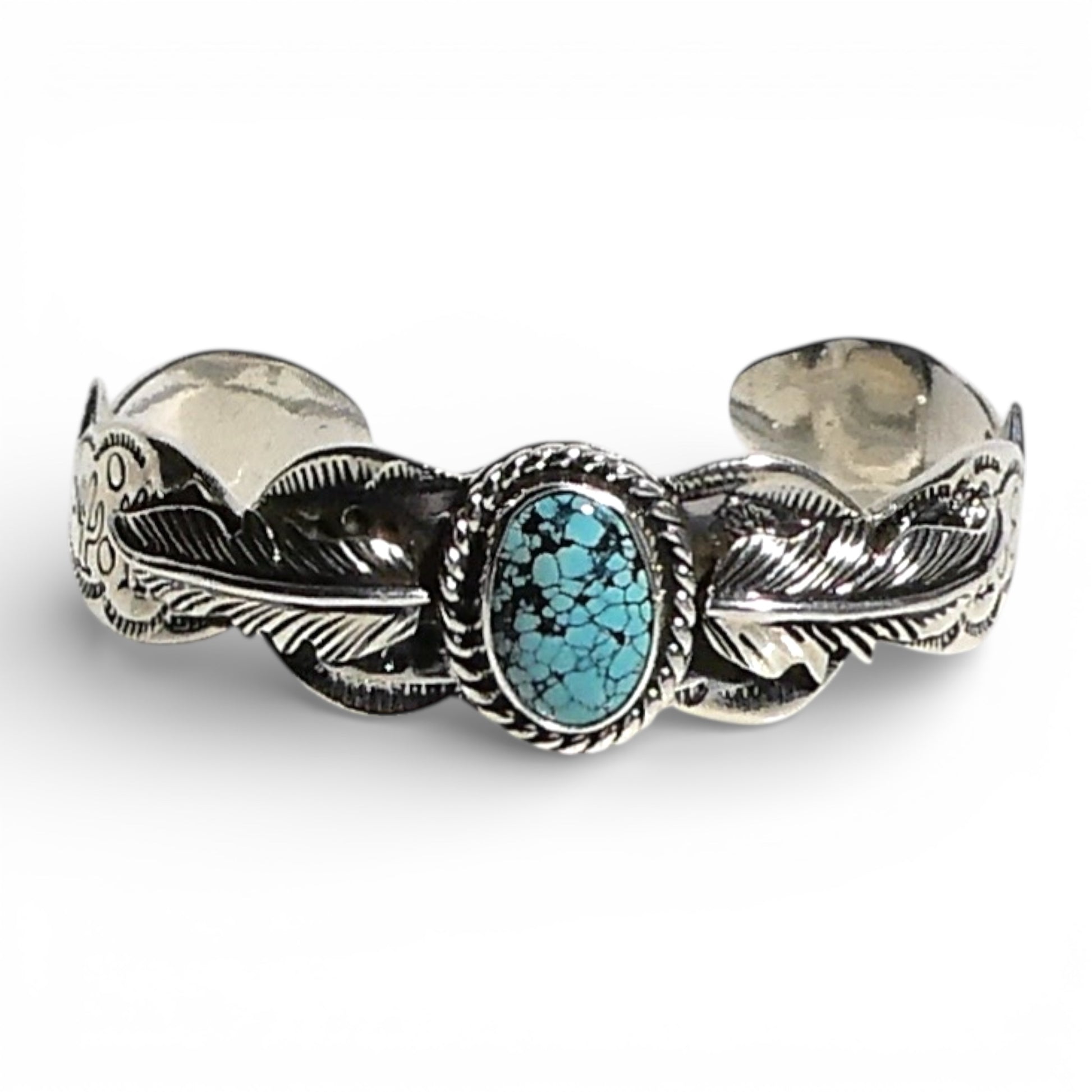 Feather & Turquoise Sterling Silver Cuff Bracelet