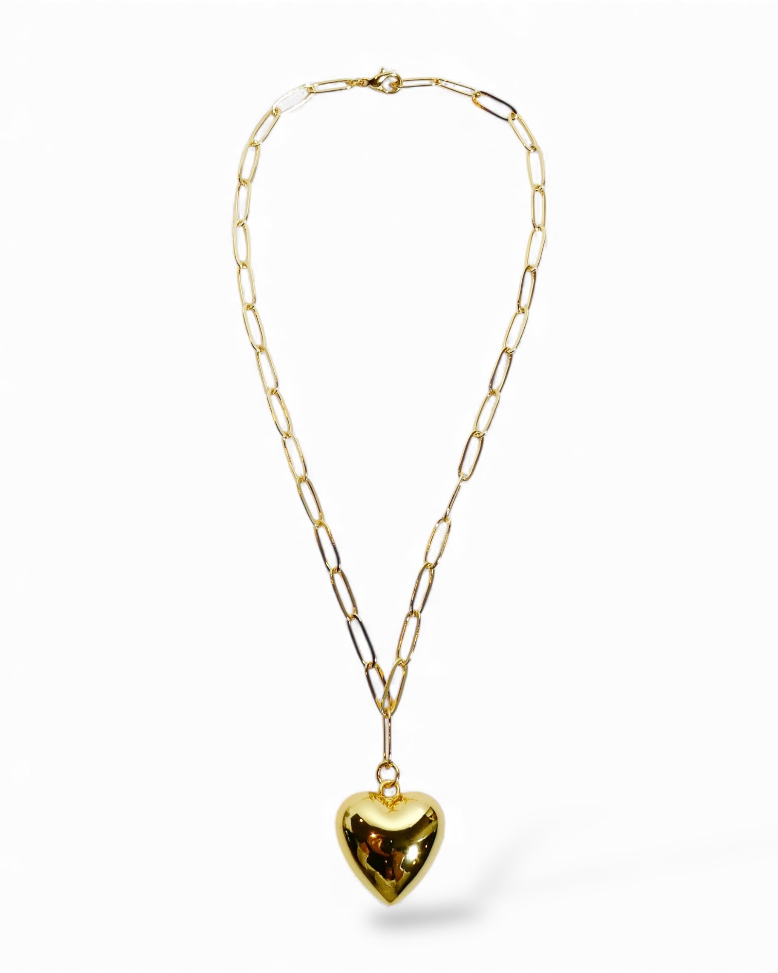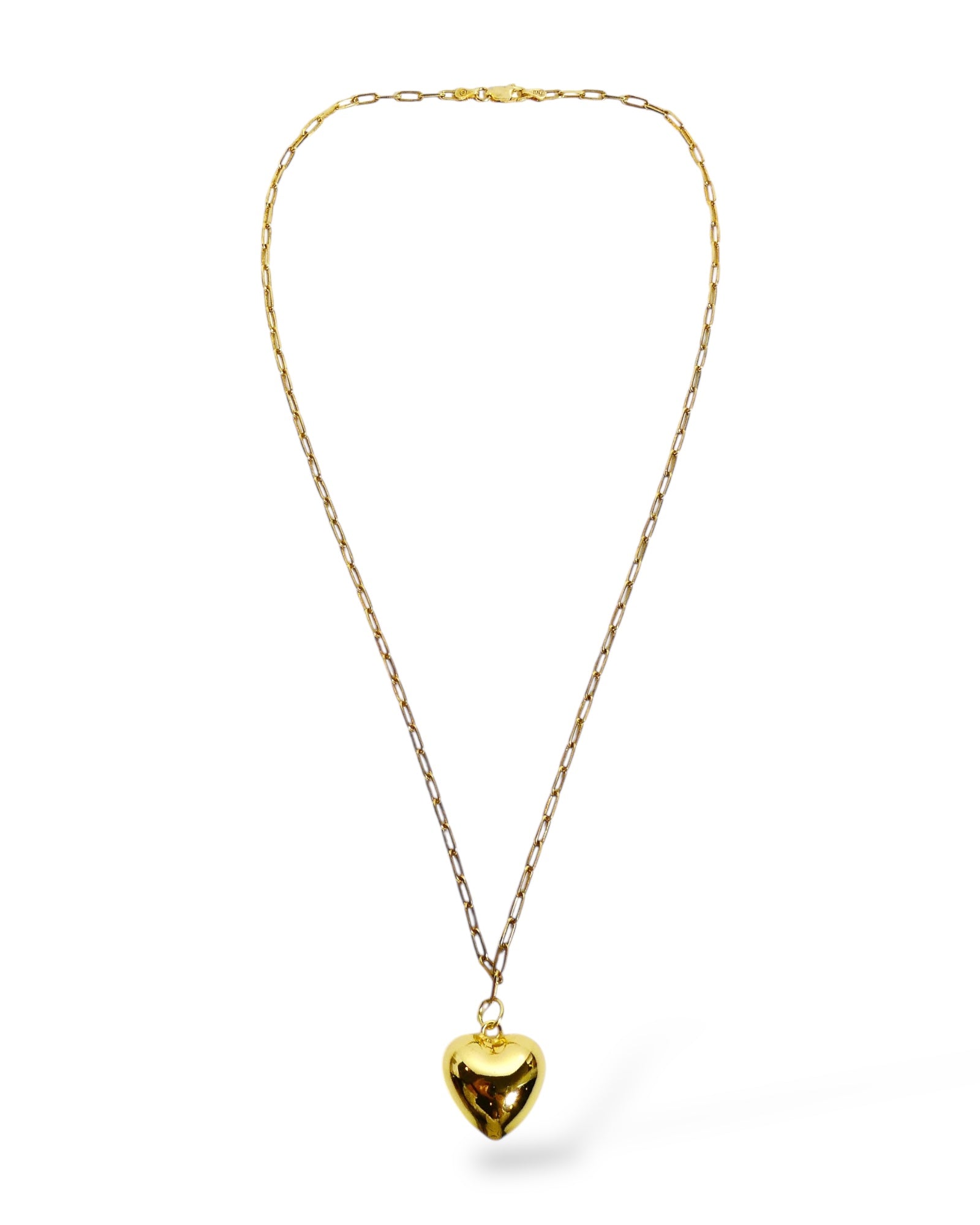 Gold Plated Sterling Silver Puffy Heart Necklace