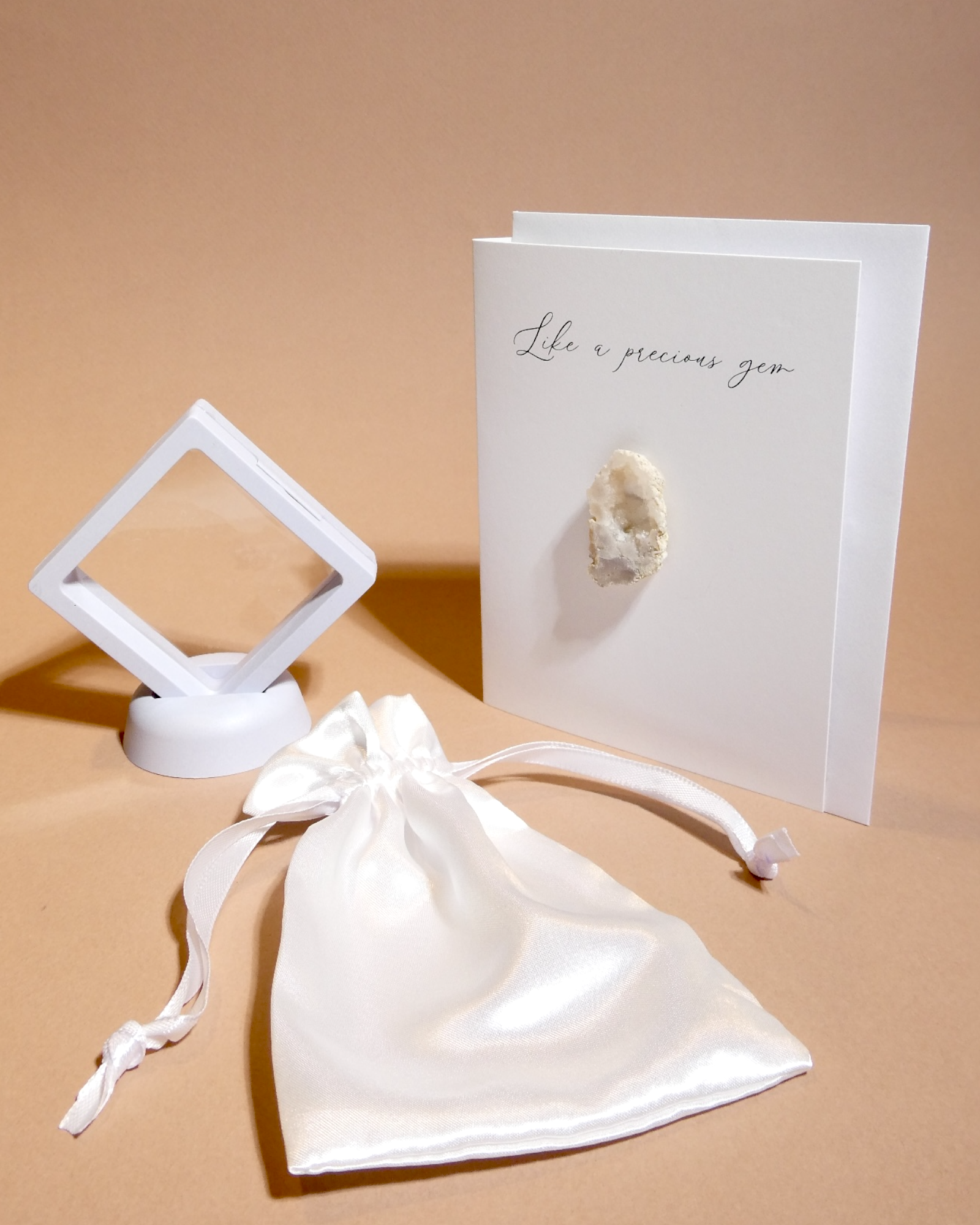 Share heartfelt words with Urban Rocks' elegant greeting cards, each adorned with a unique agate gemstone—a perfect pairing with your jewelry gift.