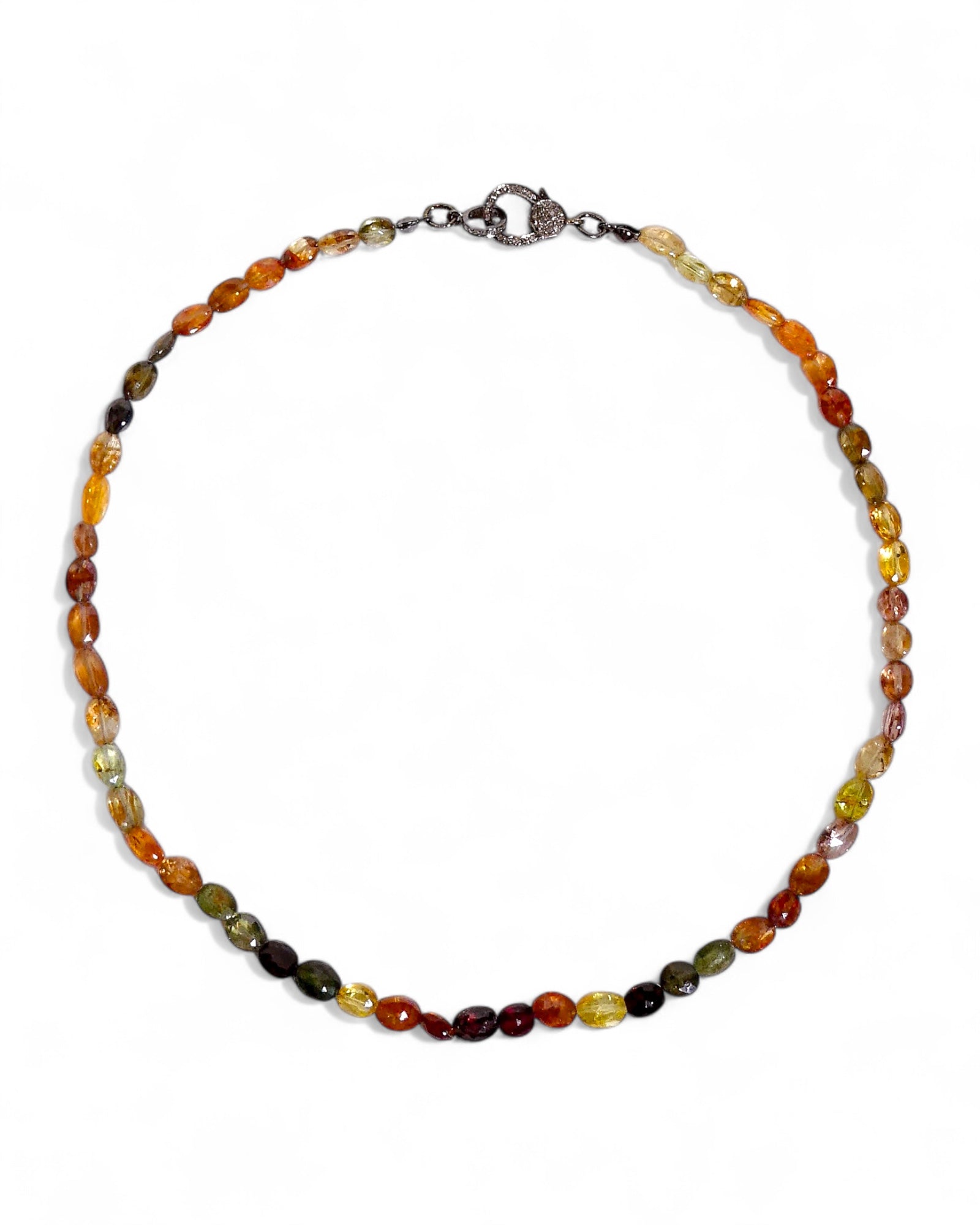 Mixed Sapphire Beaded Necklace with Black Diamond Clasp