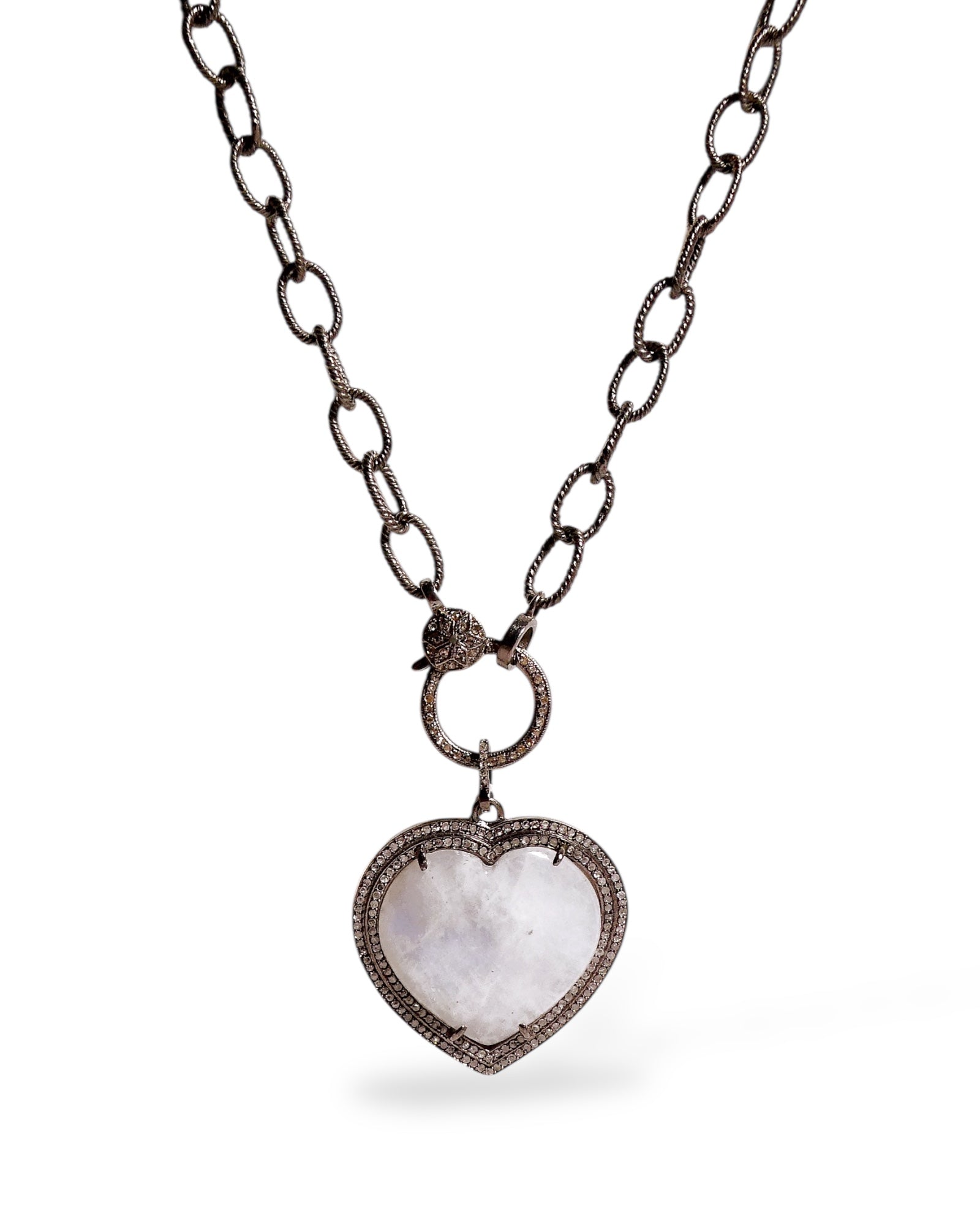 Moonstone and Black Diamond Heart Pendant