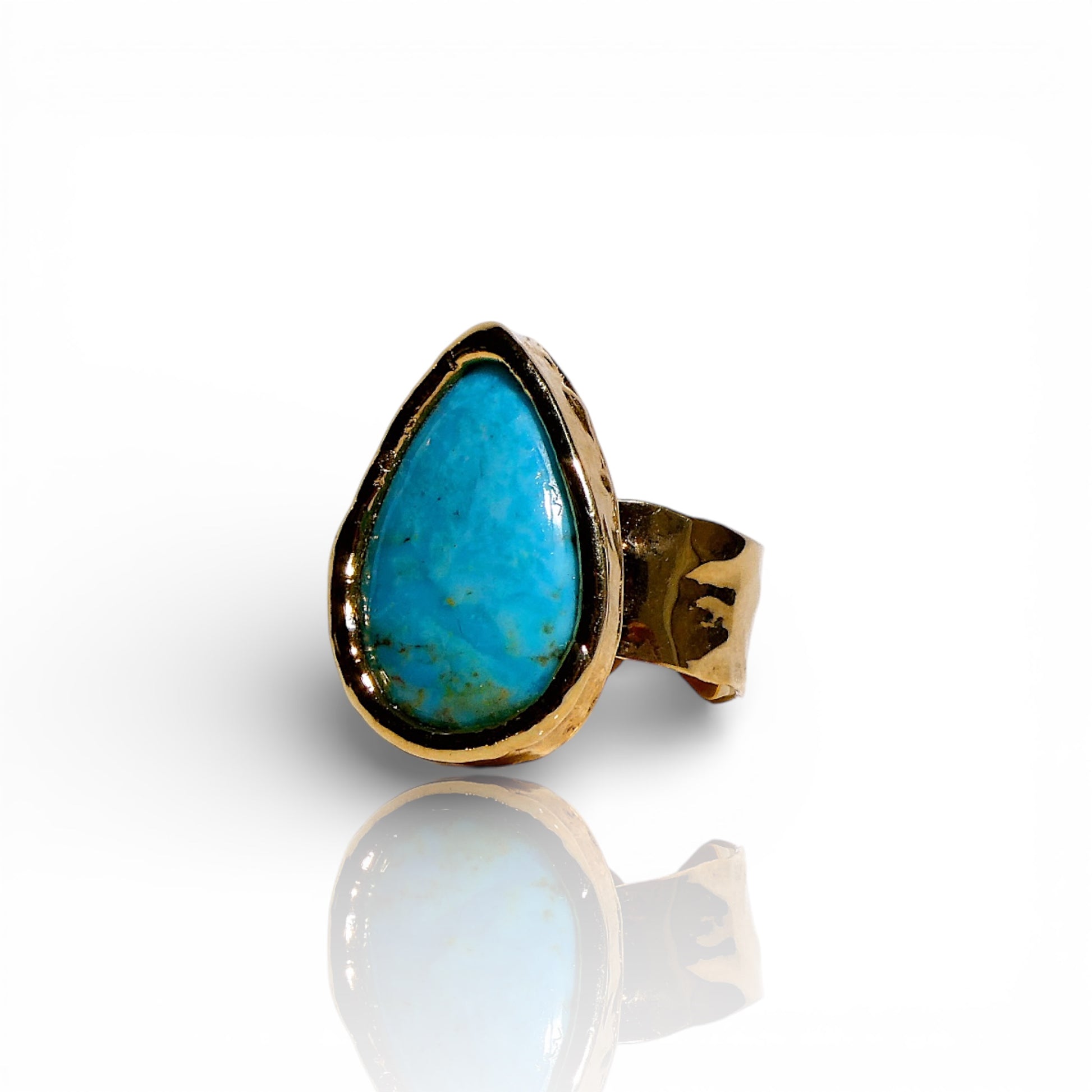 Natural Bright Blue Turquoise Pear-Shaped Ring