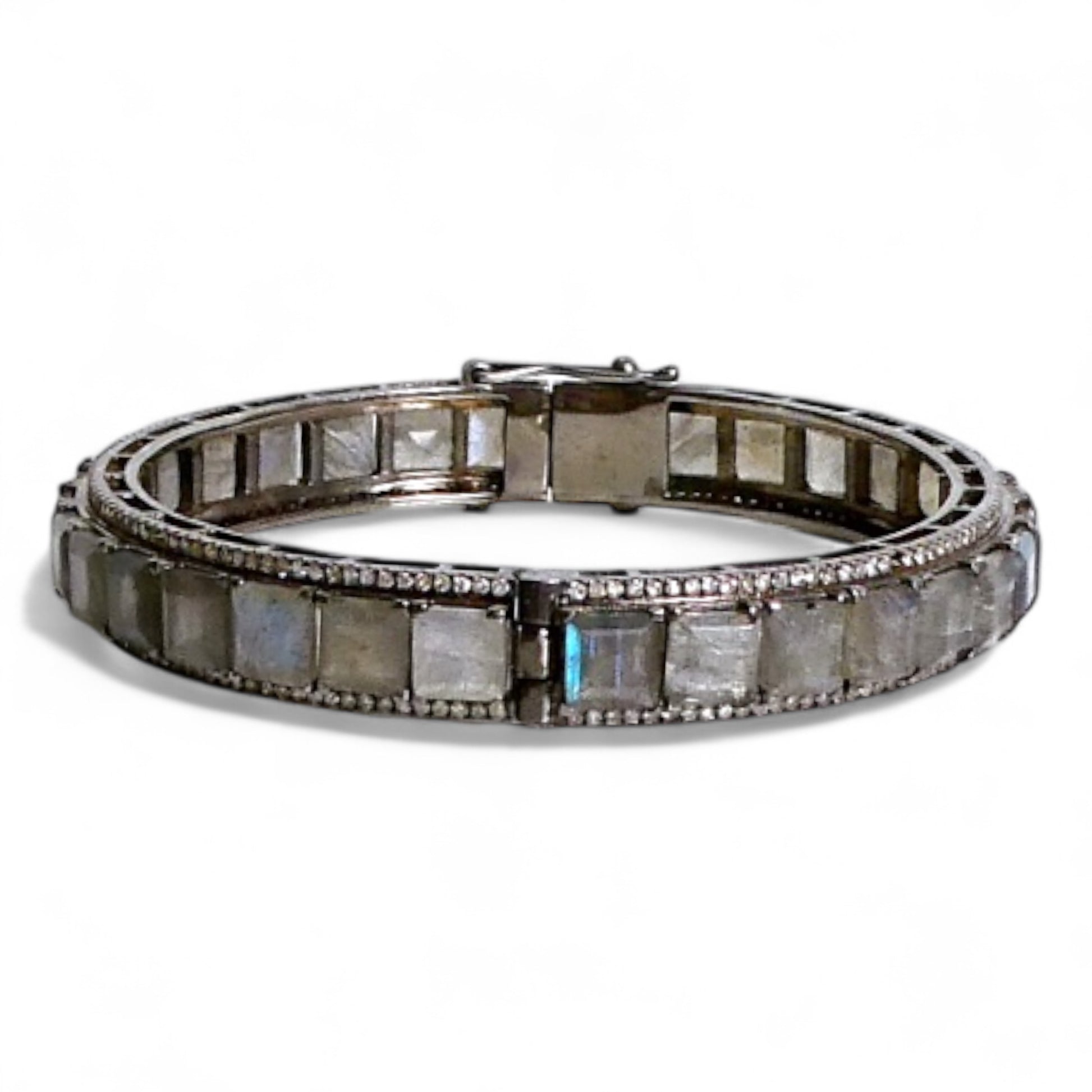 Labradorite & Pavé Black Diamond Bangle Bracelet