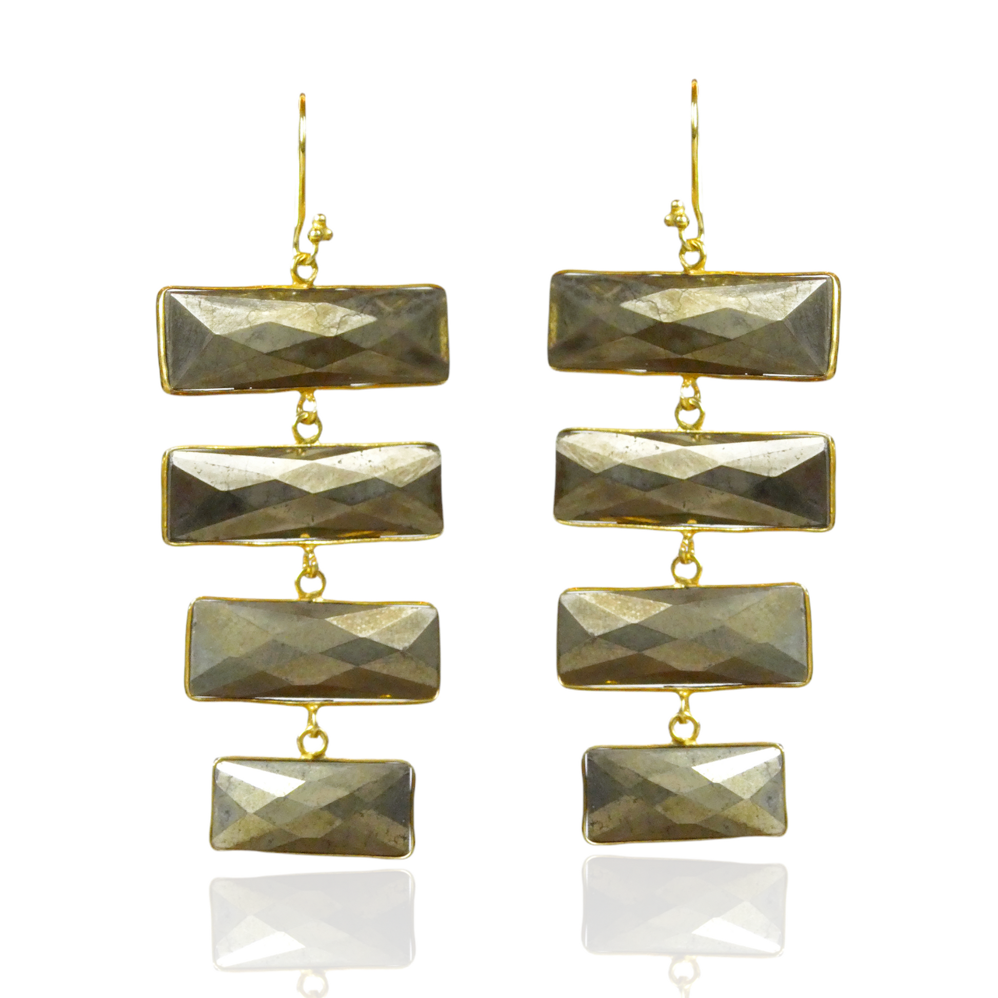 New! Rectangle Gemstone Drop Earrings Sterling Silver with gold overlay post hooks.
