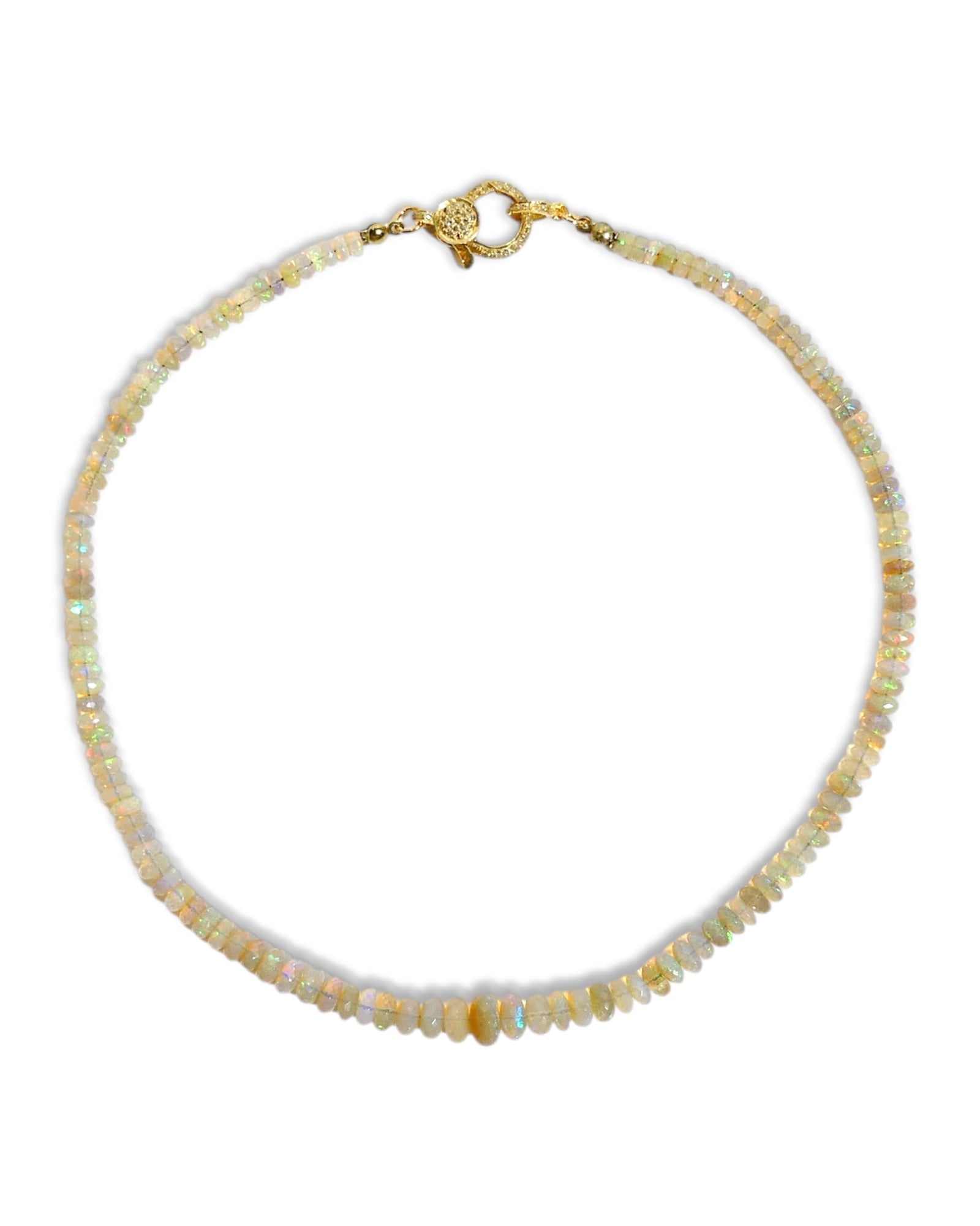 Opal Beaded Necklace with Gold Pavé Clasp