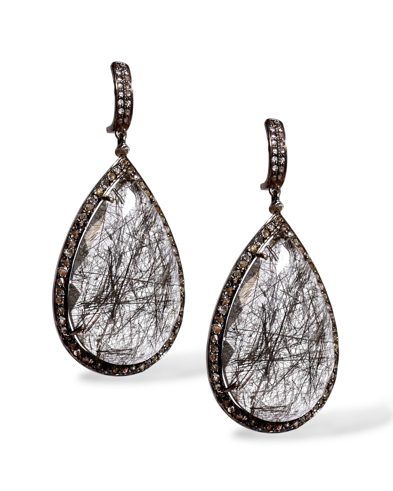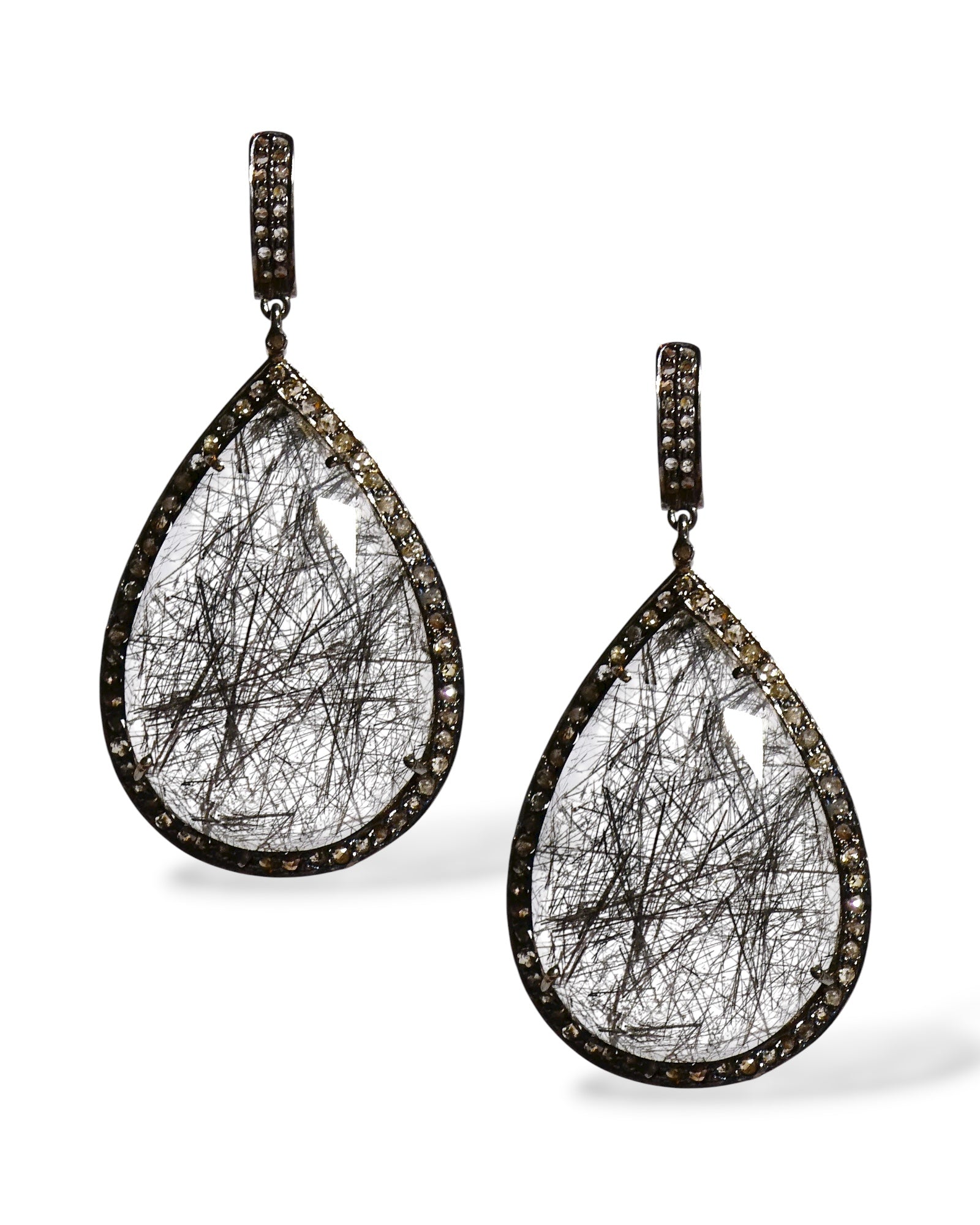 Rutilated Quartz and Black Diamond Teardrop Earrings