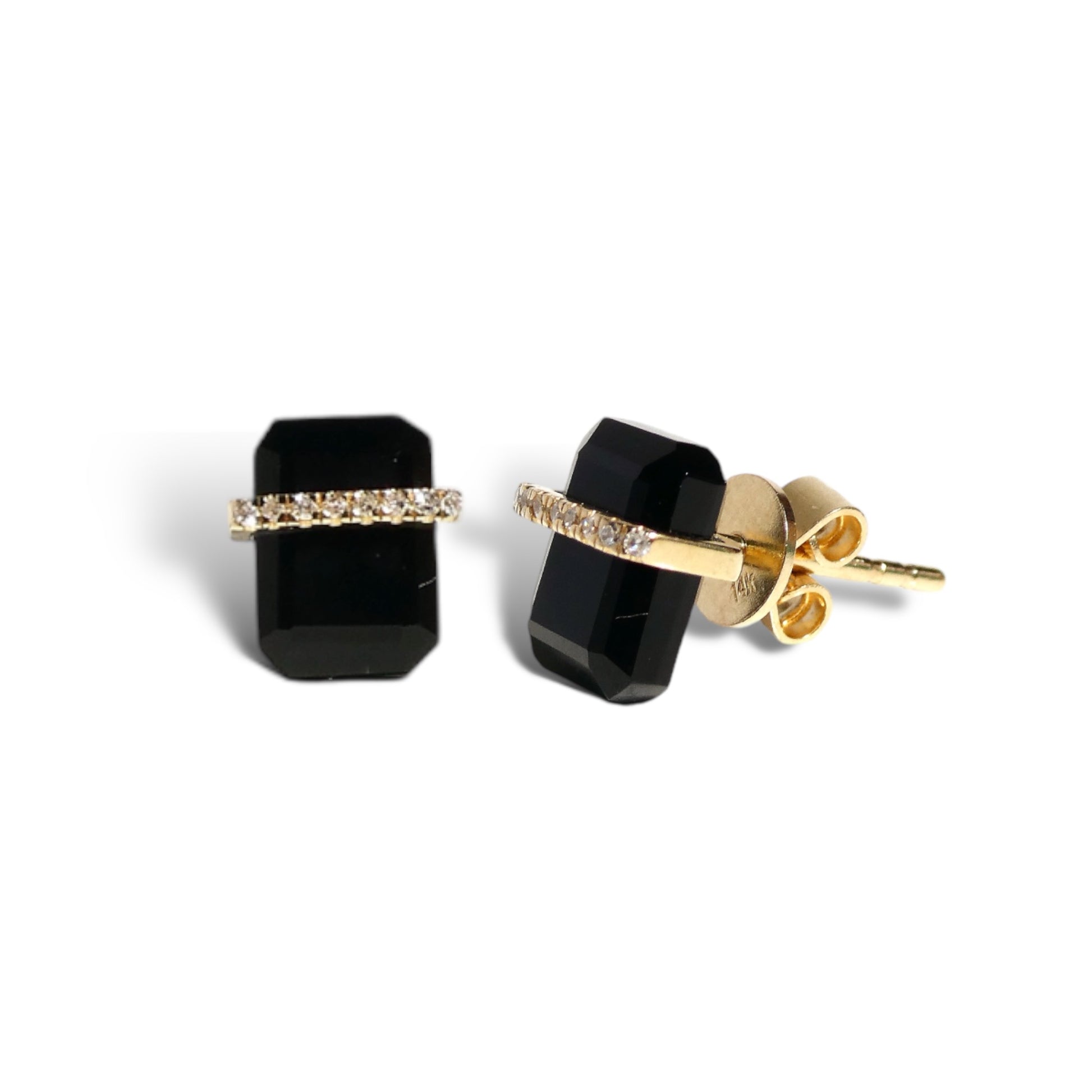 14k Gold Square Gemstone Studs with Diamond Pave Band