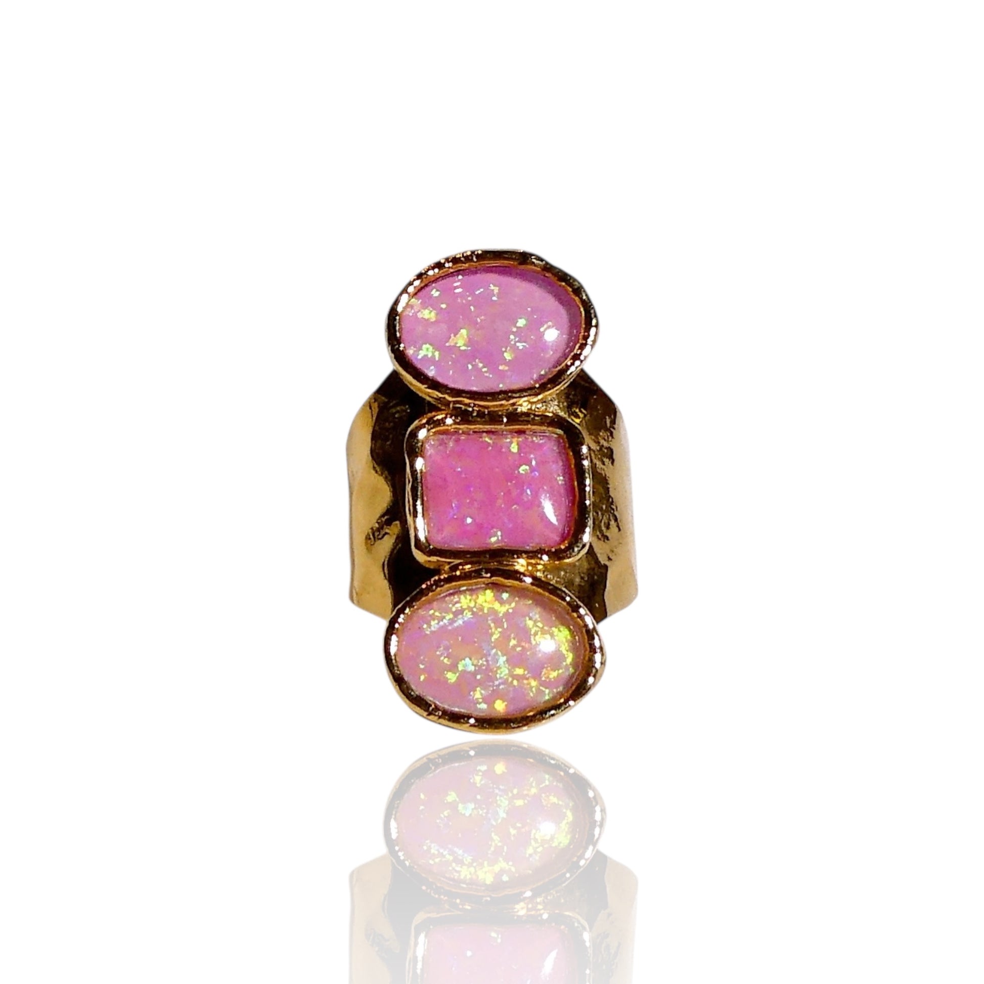 Triple Stone Hot Pink Lab Grown Opal Ring