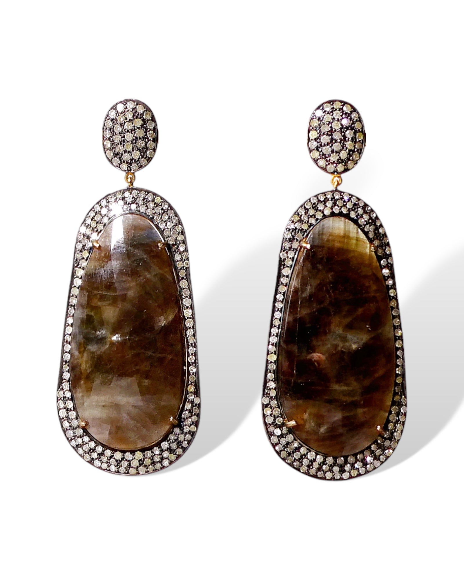 Brown Sapphire and Pave Diamond Drop Earrings